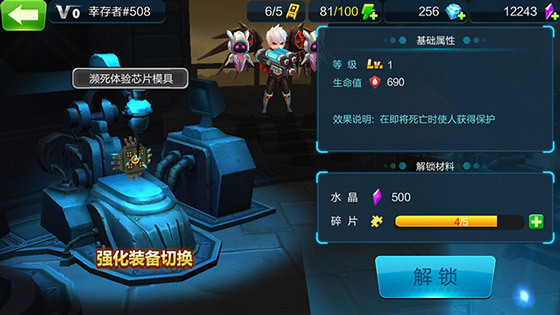 濒死体验芯片,顾名思义就是让守护者们能够有一次濒死的体验。当然,这种体验是在守卫者们遭到致死的伤害时才会触发。装备了濒死体验芯片的守卫者们,才能真正体验什么是命悬一线,空血反杀。
