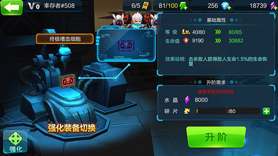 嗜血细胞芯片相较其他芯片相比,芯片效果更加稳定也更加被守卫者们所接受。装备了嗜血细胞芯片的守卫者们,在击杀敌人时能够获得敌人生命1.5%的生命恢复。如此逆天的芯片能力,能够让守卫者们在与丧尸战斗中时刻保持满生命状态,让守卫者们能够轻松战胜丧尸大军。