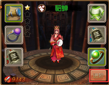 当有装备可穿的时候,点击穿装可以自动穿上能穿的装备,无装备的时候,可以点击无装备的位置去打装备。当6件装备穿齐,穿装按钮会变成‘进阶’,如图: