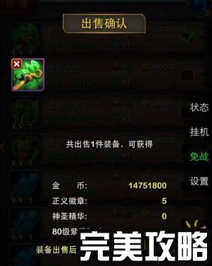 2、召唤BOSS献祭用75紫装会得到相对应位置的80紫碎片一个(如图用75紫杖喂就得到80紫杖碎片一个),同样的直接出售也一样;
