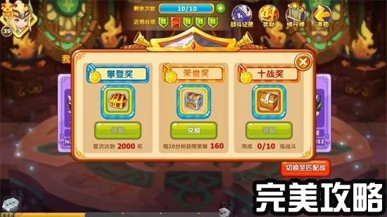 除了按排名奖励的荣誉奖外,还有十战奖:挑战十次的奖励,内有职业声望,每日必领;攀登奖:排名进步到一定的名次的奖励。