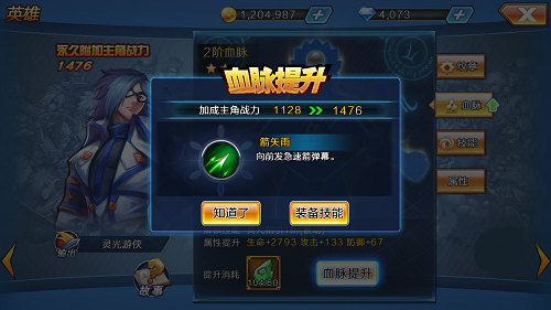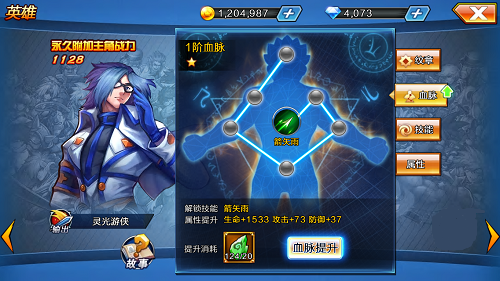 血脉的提升也会带来属性和战力的增加,同时提升血脉还可以解锁相应的技能,技能包括主动和被动的技能。