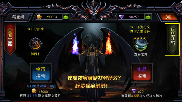 藏宝阁在界面右上方,用于金币、水晶探宝。