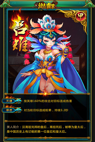 有控制又有输出的美人才是真牛X,吕雉强就强在控制技能和暴力输出二者皆备,且攻击力不俗!