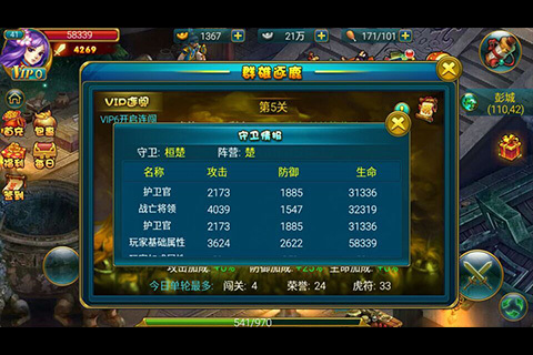 玩家29级之后,每天可出战3次,放肆杀敌抢夺虎符!四座大阵有众多关卡,每关有三个难度,不同的难度对应着不同数量的敌人,守关敌人从霸主、将领等多种不同类型的敌人中随机产生,让战局更加多变,玩家永远都不知道自己下一关将要面对什么样的敌人!