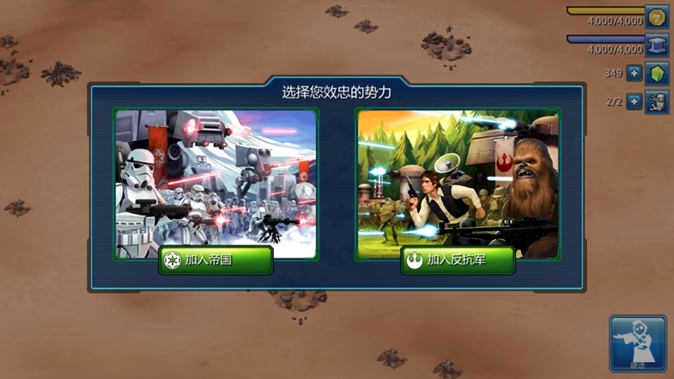你可以在游戏中加入帝国和反抗军这两个势力中的一个。根据你选择的势力,你的基地建筑风格、兵种、经历的故事剧情都会有所不同。下面就由小编来为大家简单地介绍这两个阵营吧。