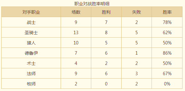 依旧的隐藏,比传统的萨满好打一点,以为你亡语生物比较多,不算特别怕aoe吧,也没碰到过盗贼,我觉得应该是55开。只要盗贼的闷棍赚到的节奏不是太多。