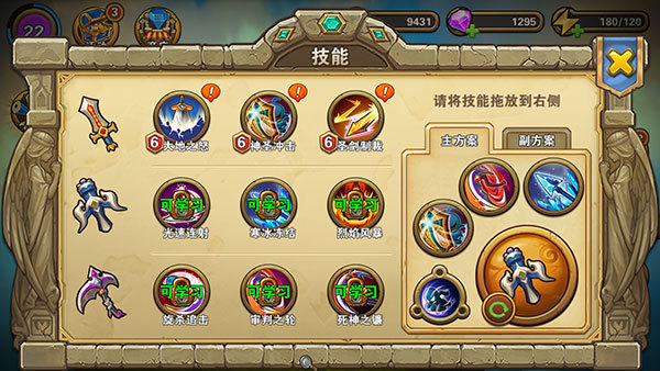 已学习的技能,可以随意拖到右侧的战斗方案中,这样便可以在战斗中使用