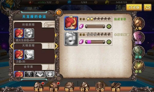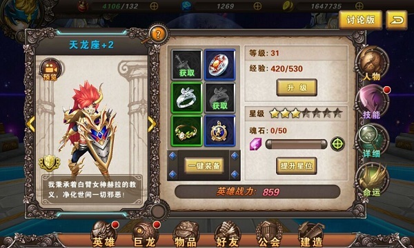 天龙座是各位的第一个肉盾伙伴,他的生命和防御都还不错,并且拥有不俗的输出,也有一定的控制技能,是前期非常实用的前排;到了后期,天龙座的防御劣势会显现出来,因此,后期各位龙骑士还是要将其替换一个强力的肉盾,如:天兔座、金牛座,或者将其作为输出型前排进行培养。