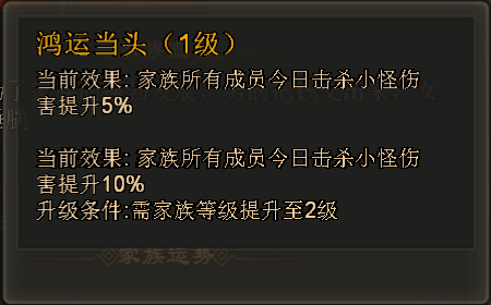 下面小编要说福利了哦,每个进入家族的小伙伴,每天可进行一次家族运势的转运。 小编专门看了下,是一个相当实惠,服务大众的玩法哦。 小编列下这些运势的效果,大家就知道啦。
