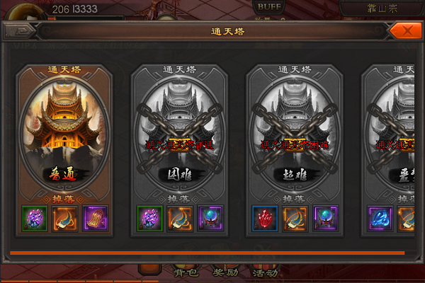 4、 副本难度:通天塔分为普通、困难、超难、噩梦4个难度。