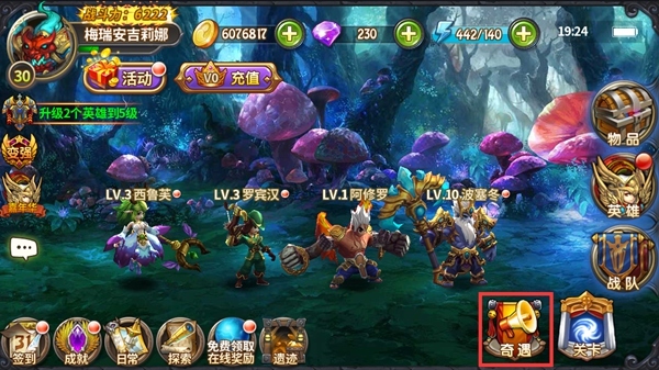 通过主界面“奇遇”进入“奇遇之路”