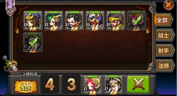 所有等级>=20的英雄会进入战前布阵列表中,选择合适的英雄进入战斗