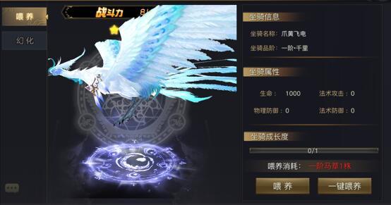 在坐骑界面中,用户可以通过喂养坐骑来提升坐骑的品阶。