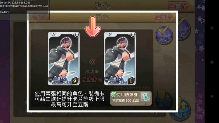 不论进化成功或失败,素材卡都会消失,但是使用防爆券可以使失败时素材卡不会消失。
