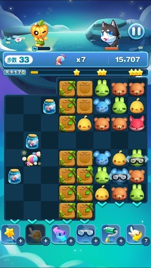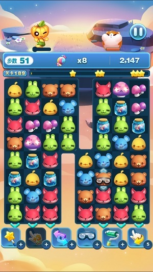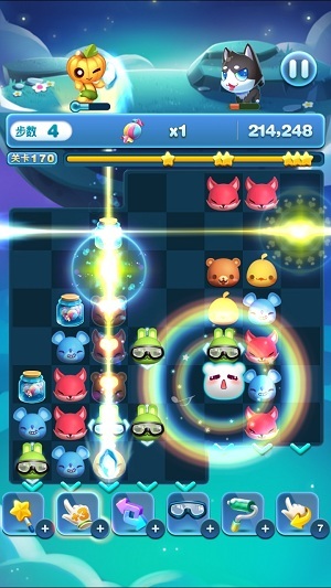 比如用目镜射线或者旋风小丑消除的话,就可以打破糖果罐,倒出一个糖果,如果下方有动物出现的话,糖果就会直接的占据下方动物的位置。