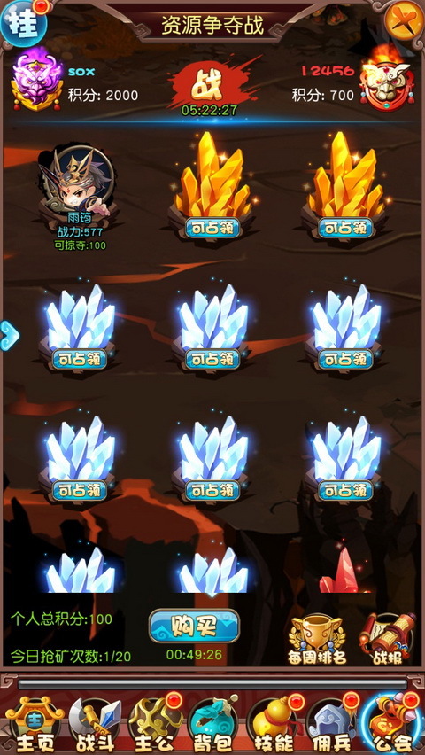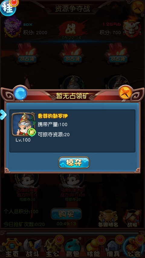 如果进入争夺战后,发现已经没有矿可以占领了,则需要挑战其他公会的玩家来抢夺矿坑,挑战成功后,不仅能获得该矿坑,还能掠夺到一定的积分。但是每天的抢夺次数是有限制的,玩家需要量力而行,尽量避免与强自己太多的对手交锋,浪费抢夺次数。温馨提示,夺宝次数超过100次可享受伤害加成哦!
