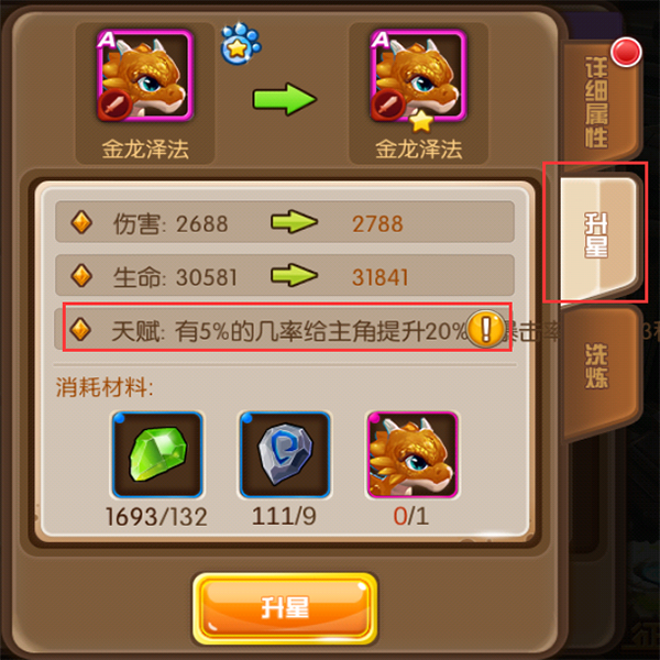 给它升星也会大幅度的提高它的战斗力,在进阶到一定程度时,还会给主角提升额外属性呦~简直不要太划算。