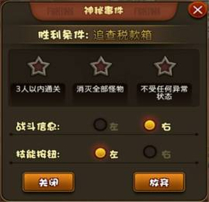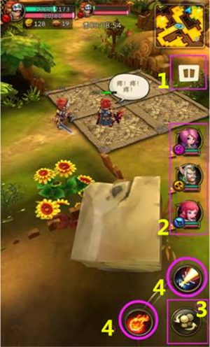 ①暂停键,点击后可暂停副本,且可在弹出的界面中根据操作习惯,选择将②③④的按键设置在屏幕左边或右边。