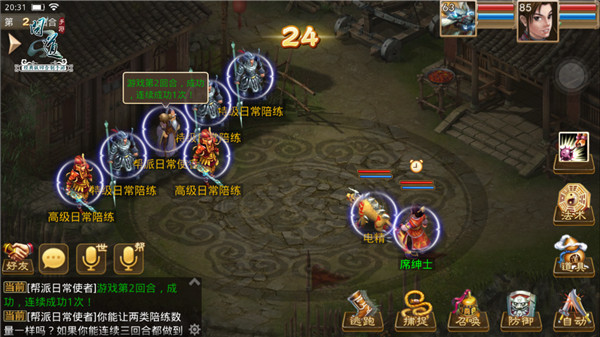 帮派挑战每天可以挑战2次,每次都是一个漫长的过程,先要战胜帮派书童、帮派军师、帮派侍女,然后是账房先生,最后是帮派总教头,对此,小编忍不住想要吐槽,我是帮主啊,这些不应该我的下属吗?
