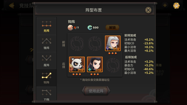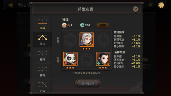 PVP阵型的选择对英雄攻击是有buff加成的,而且不同阵型的加成效果有很大差别,玩家最好根据自己的英雄搭配阵容来选择最适合自己的阵型。