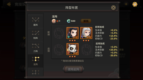 龙阵,法术防御型,法术将绕道而行,增加法防。