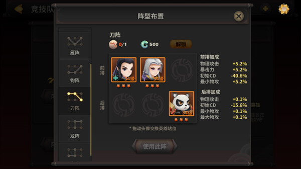 刀阵,适合物理输出型,你的刀已饥渴难耐!前后排都加物攻或暴击。