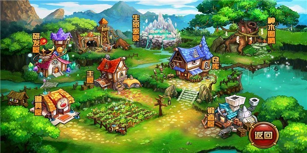 (5)采集点:家园中有3处采集点,分别为矿洞、种植园、池塘;3处采集点所产生的材料均不同;升级采集点后可获得更多种类的材料。
