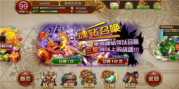 当你激情奋战的时候,怎么少得了朋友相助!游戏中,可以和好友相互赠送物品,赠送或收取赠品,不会消耗自身的物品。自己可以设置自己所需物品,好友便可以根据需求进行赠送,战斗时邀请好友比陌生人获得友情点更多。每使用200友情点可进行一次友情召唤,可召唤1-3星战魂;使用魂钻可以召唤3星及以上的战魂,可以召唤1次/召唤10次。