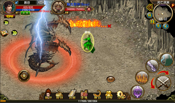 4、Boss:地下有红色光环,比任何小怪与精英都强,血量有十几万甚至上百万,攻击力与速度都很强大,一般需要组队击杀,击杀有几率掉落极品装备和一些游戏道具;