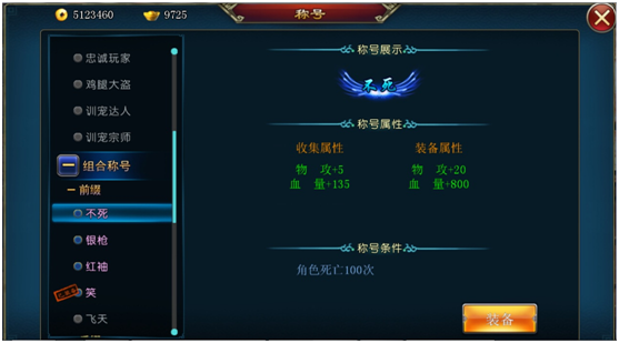 这类称号的特点是,如果想要刷条件,短期之内很容易达到。比较有代表性的就是召唤50次饕餮魂骨的赛诸葛、拥有50名好友的香帅、角色死亡100次的不 死等。金币搜魂如果召唤饕餮太慢,试试使用魂骨召唤卡吧,一招一个准,效果贼拉好;50名好友,只需站在主城内,搜索附近的人,见一个加一个,达成速度不 要太快...有人说不死,这个要死100次,怎么能在短期内刷到呢...其实小编表示,这是很容易达到的一个称号...小编曾经用一个满级号,直接扒掉装 备称号魂骨宠物,裸身冲向平常刷经验的主线副本,5秒之内绝壁K.O,然后无限回城进入K.O回城进入K.O...如果还嫌慢的话,试试直接原地复活吧, 想象一下,省了来回刷地图时读取进度条的时间...不要太快哦!但是一定切记,身上所有加属性的东西,尤其是防血闪避免伤抗暴之类的,能扒掉都要扒掉,而 且一定选择主线、挑战副本、组队副本这些死亡无消耗的副本...一个小小的不死,1小时之内绝对能搞定,而且战力加成绝壁不低,亲测有效!
