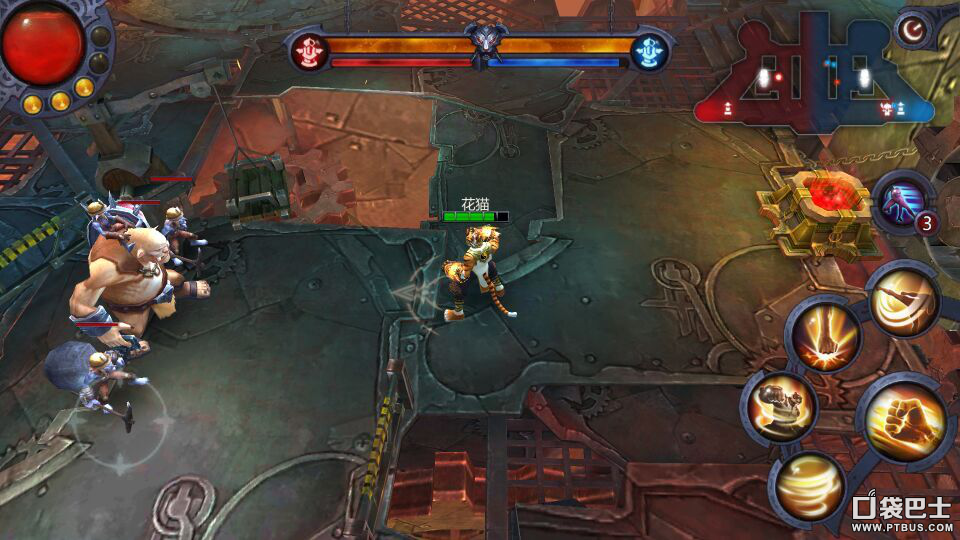 单凭玩家和小兵攻击水晶塔是很吃力的。在3V3地图左上角和右上角有两个据点,玩家站在光圈里等一段时间即可完成占据。同时占领两个据点时,可以进入地图下方的祭坛并迅速占据,召唤出强大的怪物帮手进攻地方的水晶塔。