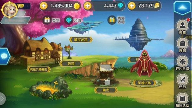 注意游戏主界面最为左边边的山崖上的“莉兹贝特商店”,这个商店是系统随机刷新的,不是随时都能看见,但他的用处却很大,每次它的出现里面都会有很多你急 需的装备或装备碎片,以及一些灵魂石;而且一般来讲都是花金币购买的(召唤卡除外),也不会很贵,特别是绿色到蓝色进阶需要的装备碎片一般在5000金以 下,相信大家都能够承受。