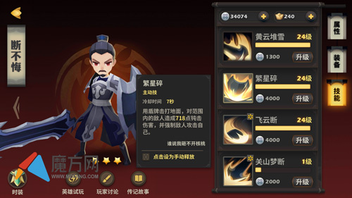 如果你觉得以上两种英雄搭配都没有挑战性,可以尝试一下全攻击型阵容。阵容中全为输出型英雄,建议选择群控法师、爆发法师、物理持续输出。前期推荐“宋御风”加上“偃”和“焚野”。“宋御风”有群控输出技能,为后排创造安全的输出环境,然而“偃”和“焚野”,分别是爆发性法术和持续性物理输出,而且两人均有AOE技能,清小怪效率极高。