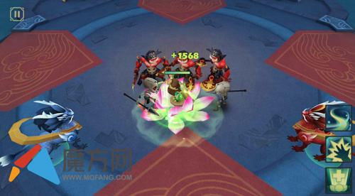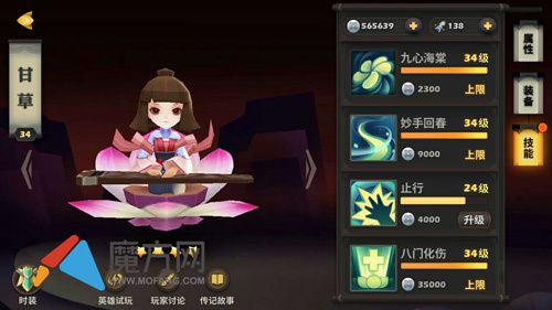 八门化伤:以自己为中心召出一个治疗阵,大幅治疗阵内的所有友方(亲测,包括NPC)回复大量生命值。(丧心病狂的群体治疗!这也是为什么甘草是一个前期能一直用到打后期的英雄的原因!有单体治疗有群体治疗,副本用可以拿来提高获得三星的几率,PK使用可以让敌人郁闷的不行。)