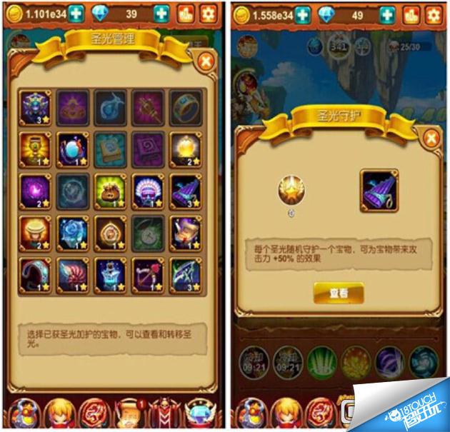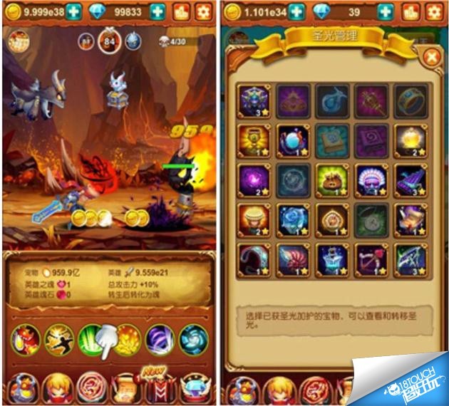 游戏中,宝物接受圣光普照可提升50%的攻击力,无次数限制的叠加设置,可使宝物的属性无限增长。当遭遇战力瓶颈无奈选择转生之时,不妨先试试圣光的庇护,当然宝物越强大,加成的效果越明显,单就战斗力而言,死神之镰显然是你最理想的选择。
