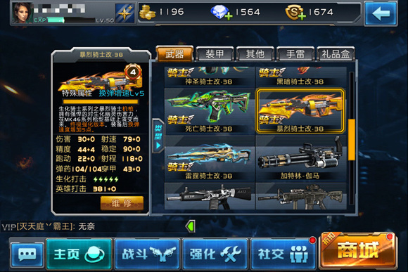 不知道玩家们是否还记得,爆裂骑士首次曝光的时间是与生化英雄模式同时上线的,在比较早之前的生化模式中还是没有爆裂骑士的。爆裂骑士的生化打击能力达到了2级,也就是说攻击生化幽灵拥有更强大的伤害力。爆裂骑士子弹数量虽然不如盘龙已经加特林的多,但是在连续攻击能力上完全不输给这两把武器,击杀生化幽灵就是一直攻击它,让生化幽灵连逃跑的机会都没有,爆裂骑士就很完美的做到这一点。