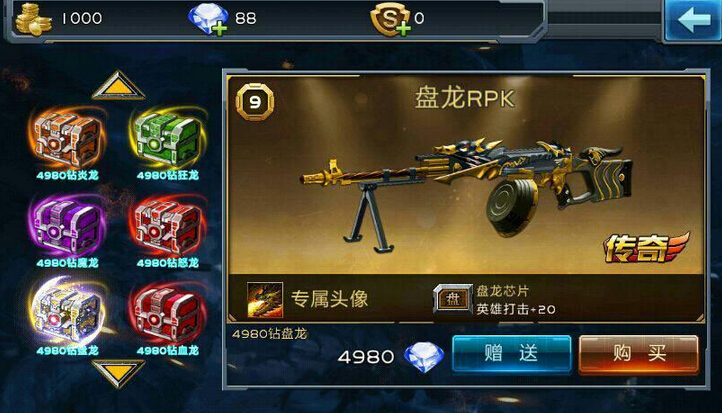 就我个人而言,因为本身打挑战的时候机枪用的比较少,但是从其他玩家考虑,如果你是一名喜欢刷挑战模式的,想要体验第一名的荣誉,可以考虑购入盘龙RPK,因为现在全民枪战不仅仅只有挑战模式可以发挥机枪的优势,还有新出的道具大乱斗模式、生化英雄模式中都是机枪的天下!