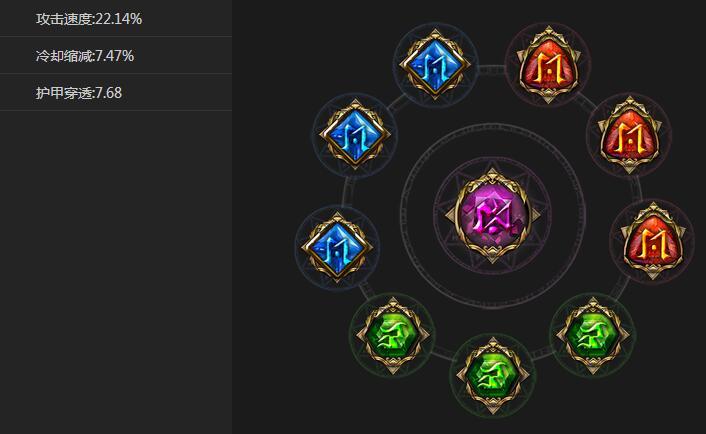 从以上圣石搭配方案中,可以看出德古拉需要的是护穿,当然面板攻击也还是要的,否则光有护穿有屌用。至于攻速就更不用说了,跟人对A,没攻速,怎么快速回血。同时减CD圣石也是德古拉需要的,毕竟德古拉不需要蓝量,CD时间越短,对德古拉越有利。