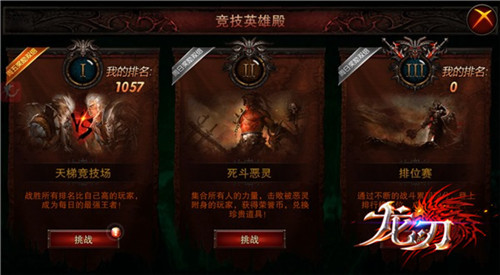 既然是竞技,所以这里主要是玩家之间的战斗。天梯竞技场主要是对战由电脑控制的离线玩家;死斗恶灵则类似于CSOL里的生化模式,玩家一起消灭被恶灵附身的玩家。后期的排位赛是证明自己能力的最佳去处,还有每日和每周奖励。