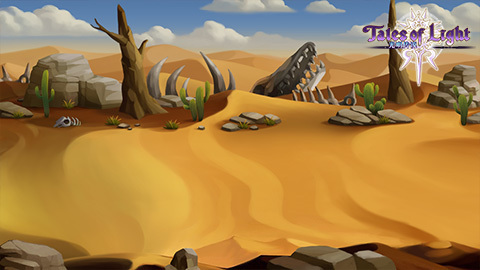 酷热的沙漠使旅者难以前行,妄图穿越沙漠的旅者,都将被无尽的风沙所吞没,变成了点缀与黄沙之中的白色枯骨,据说此处曾矗立着伟大的沙之帝国,然而现在却变成了隐藏在这茫茫黄沙之中的一片废墟。