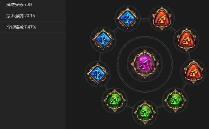 这套圣石以输出伤害为主,法穿+法强圣石的组合可以极大的提升但丁输出能力,开个大招,只要敌人不是满血,几乎可以一套带走。不需要小看但丁的技能伤害,法穿的伤害加成可不是看的,而且但丁技能的控制效果。