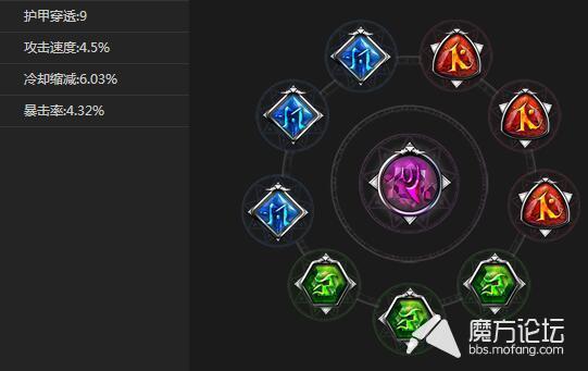 这套圣石比较全面,对多米诺的属性加成也是比较均衡的,护甲穿透和暴击效果使多米诺对敌人造成大量的伤害,如果是残血的敌人,在多米诺面板伤害够高的情况下,可能会直接出暴击,造成秒杀。而攻速和减CD也是有用的,攻速使得多米诺在近战时可以进行多阶段攻击。减CD就不用说了,只要蓝量够用,多米诺可以用1技能无限给敌人造成消耗。