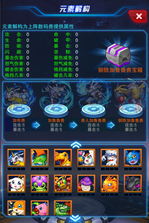 1. 需要收集不同进阶状态的数码兽,放入对应科技核心系统,可提高全体上阵6只数码兽的不同属性。