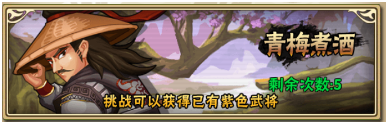 本次更新后,玩家将在35级开启「青梅煮酒」,从图上就可以看出,这是一个可以获得指定武将的试炼功能。