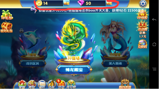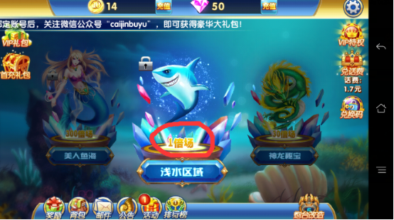 6.在游戏一倍场里解锁炮倍达到30倍就不能再进一倍场游戏了.