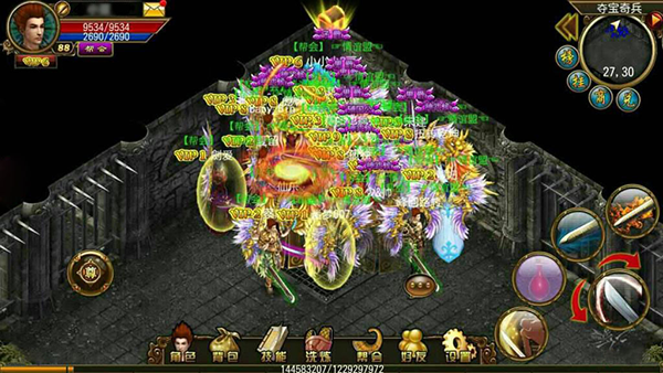 夺宝奇兵是一个群体性的PK活动,活动开始后在地图会刷出一只怪物。杀死怪物后,会掉落一个宝箱。玩家拾取宝箱,需要保护宝箱10分钟不掉落,即不被其他玩家杀死,才可打开宝箱,获得奖励。获得宝箱后你可以到处跑躲避敌人的攻击,如果10分钟内被其他玩家杀死,宝箱会掉落。当然,可以消耗复活令复活,重新去击杀拥有宝箱的玩家拾取回宝箱。人很多时,你可以点击屏幕左方【探索宝箱】,会帮你锁定拥有宝箱的玩家,若宝箱在地上无人拾取,点击【探索宝箱】则会跑到宝箱面前拾起宝箱。打开宝箱有概率获得1000元宝卡、特戒、星陨玄晶。
