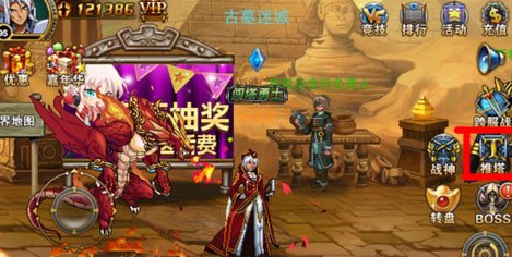 该系统只有在玩家角色达到50级之后就可以看到,就在战神之路的旁边,点击就可以进入了,当你的背包那一栏目点开的时候,只要点击一个没有标注的图案会取消背包栏,这时也会出现该按钮。