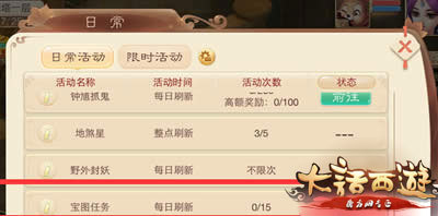 2、15次/日,期间完成任务的时候有几率获得藏宝图,每一环任务都有45分钟的完成时间限制。
