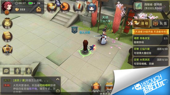 可以看到,英雄经验和天选者经验奖励还是非常可观的。而在玩家进行三仙六魔战斗中,会触发封妖镇魔副本(类似于端游天下3三仙六魔中的运财小妖)。玩家需要在巴蜀和西陵城内寻找封妖怪,进行任务。副本需要三人组队才能开启,并且如果被其他玩家先挑战的话,只能找另外的妖怪NPC开启副本,所以速度一定要快。建议先把队伍组好,然后去做掌门任务或者势力任务跑地图,发现系统提示后,第一时间去找NPC怪,效率完成5次副本领先经验。